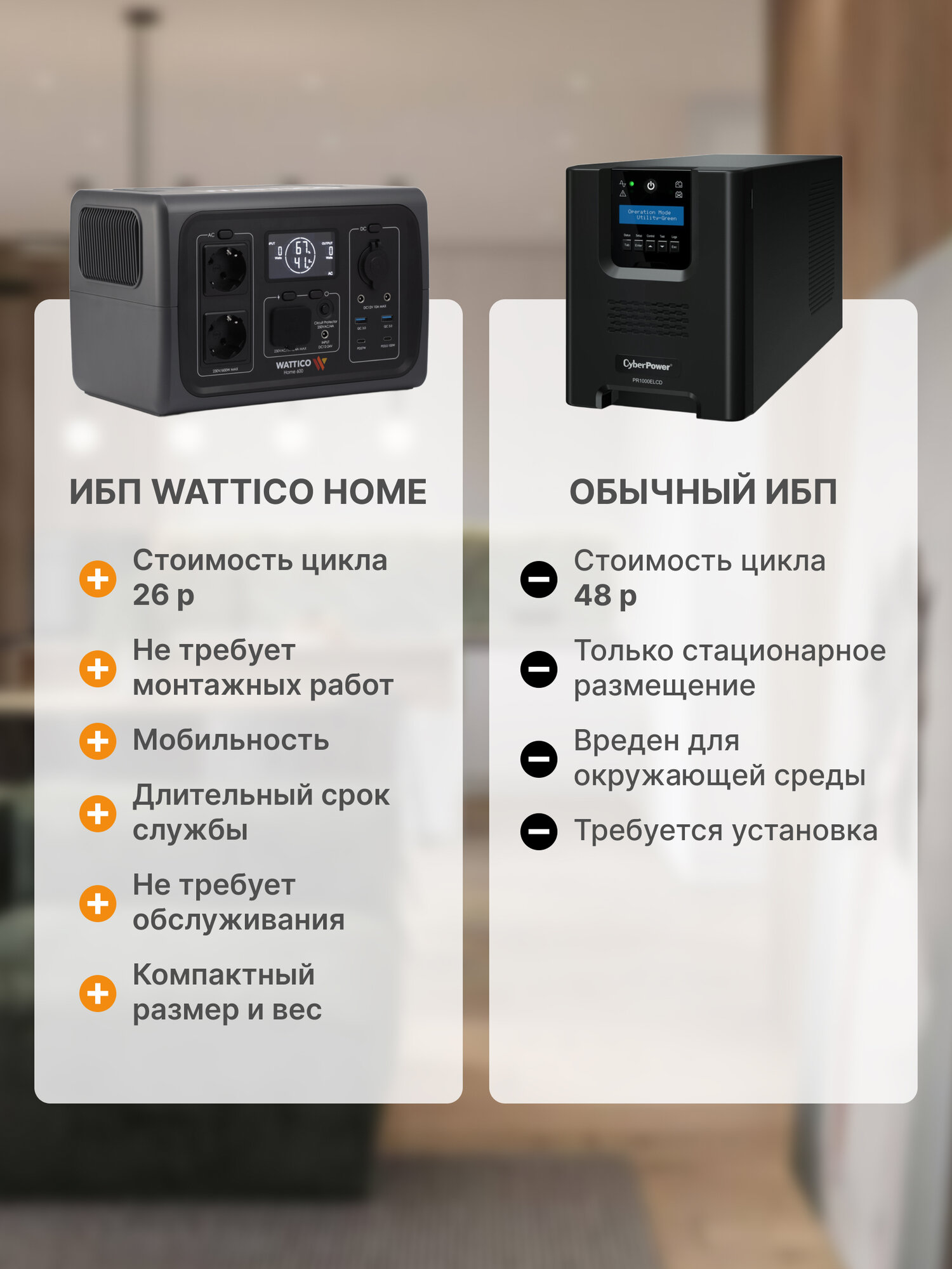 Портативная электростанция c функцией ИБП Wattico Home 600 160 000 мАч бесперебойник для дома, дачи, котла и насоса информация: