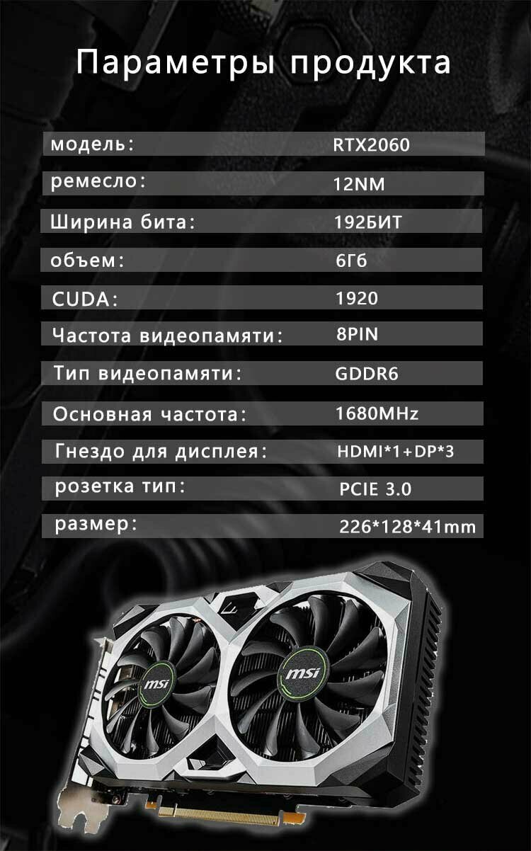 Отзывы на Игровая дискретная видеокарта MSI RTX2060 емкостью 6 ГБ Двойной вентилятор