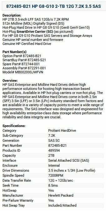 Отзывы на Жесткий диск HP 872485-B21 2 ТБ 12G 7.2K SAS 3.5' серверный HDD 872291-001, 872289-001, 872744-001, MB002000JWFVF