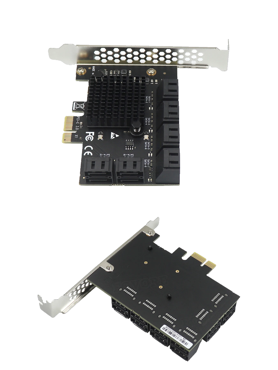 Отзывы на Адаптер, плата PCI-E на 12 выходов SATA 3.0 6 GBp/s чип SA3112J
