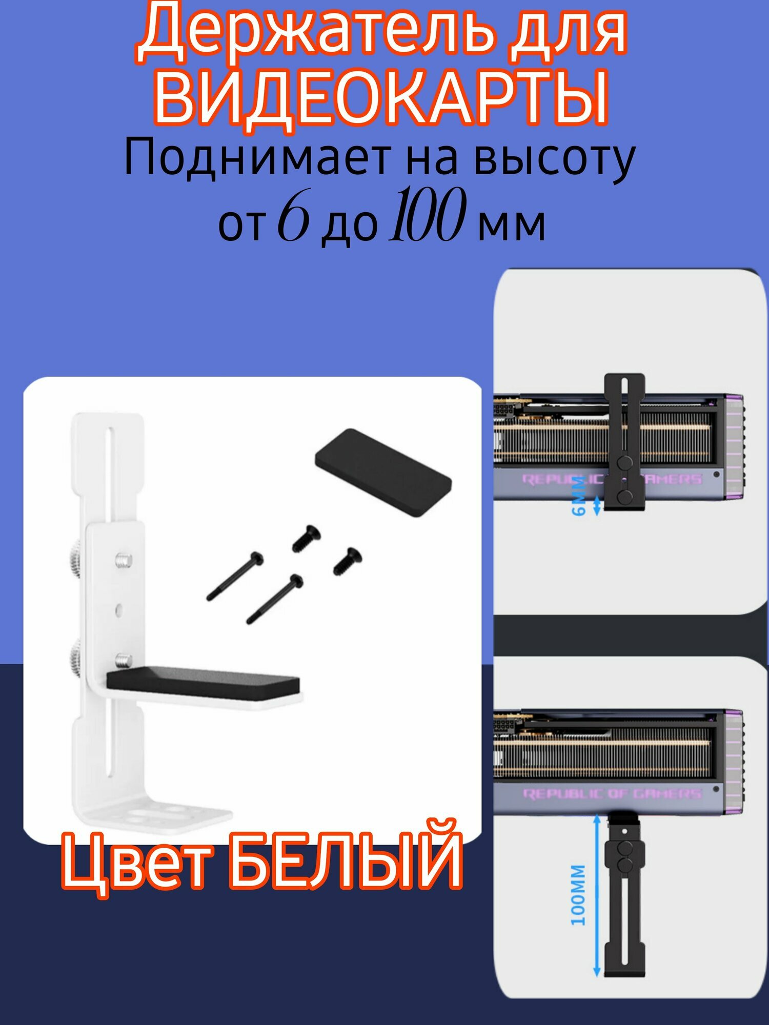 Отзывы на Держатель для видеокарты (кронштейн) 0,6 -10 см Регулируемая высота - Металлический - Цвет белый