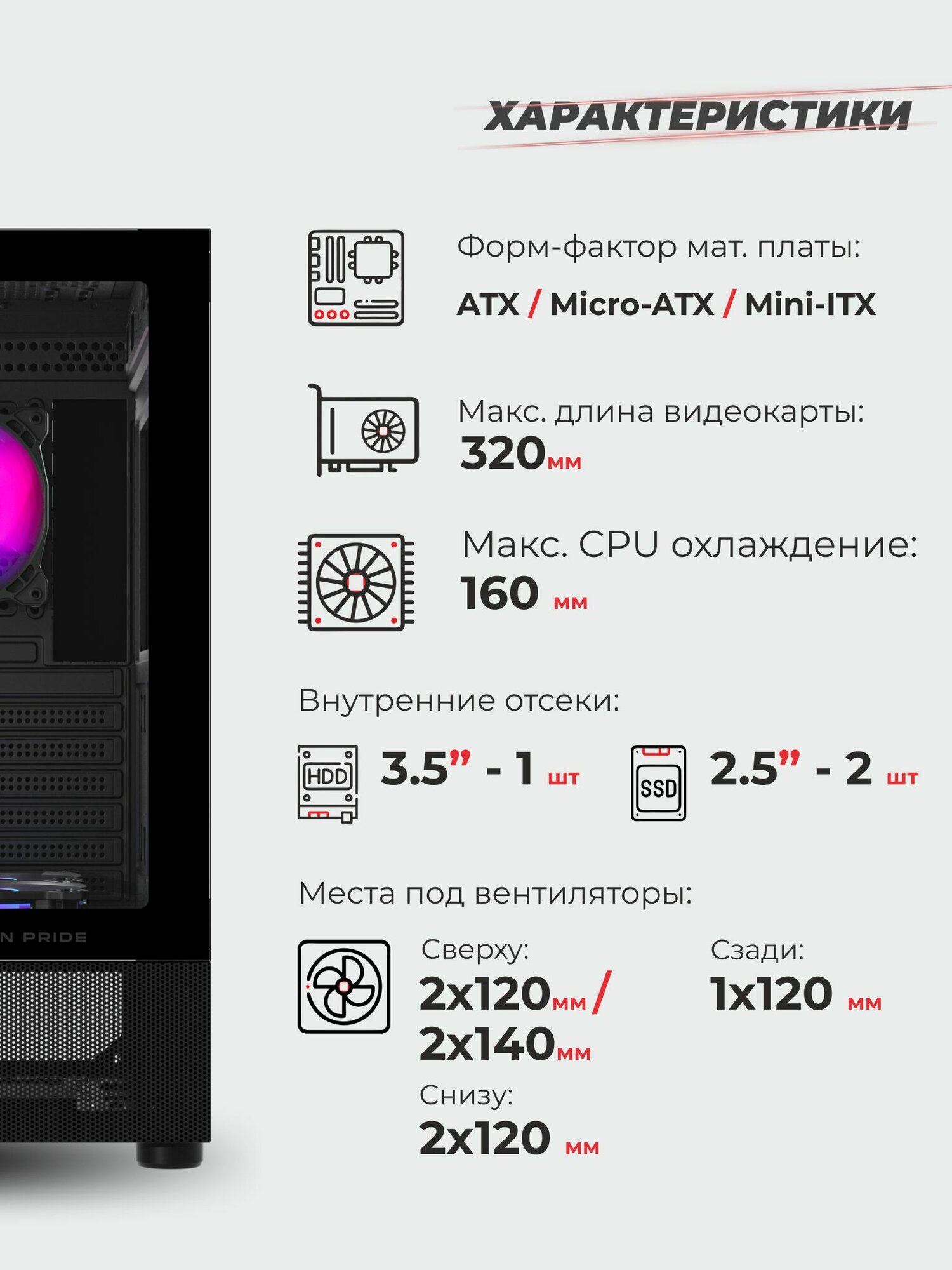 Корпус Invader Q8 + 3 ARGB вентилятора + закаленное стекло, ATX, Micro-ATX, Mini-ITX информация: