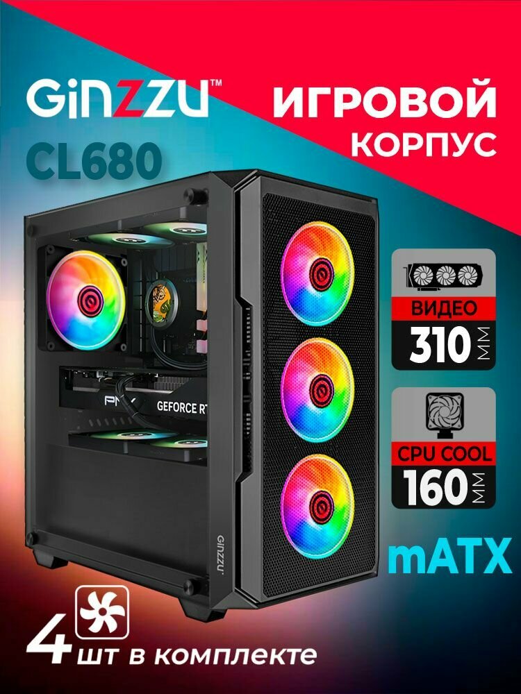 Корпус Ginzzu CL680 mATX закаленное стекло боковая панель информация: