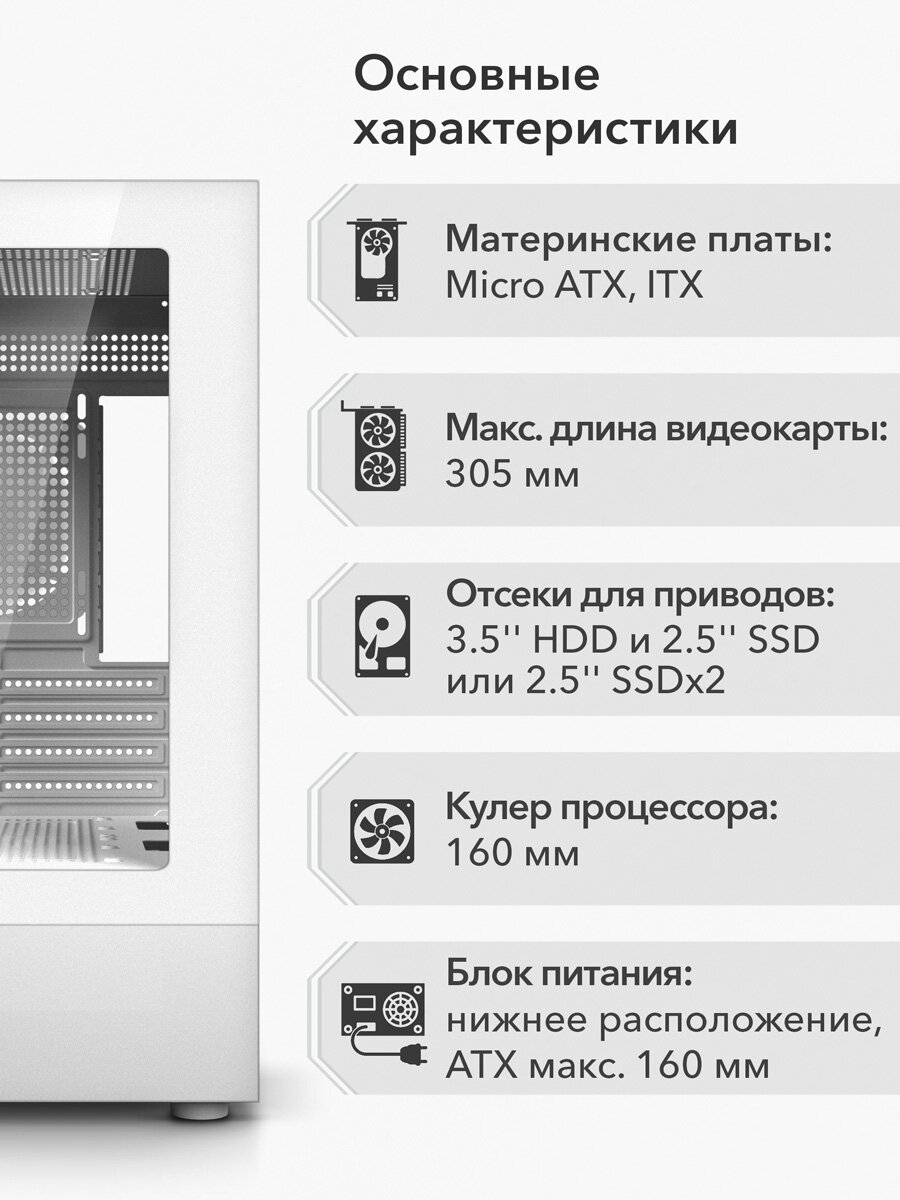 10 цен на Корпус для ПК игровой аквариум без блока питания microATX белый