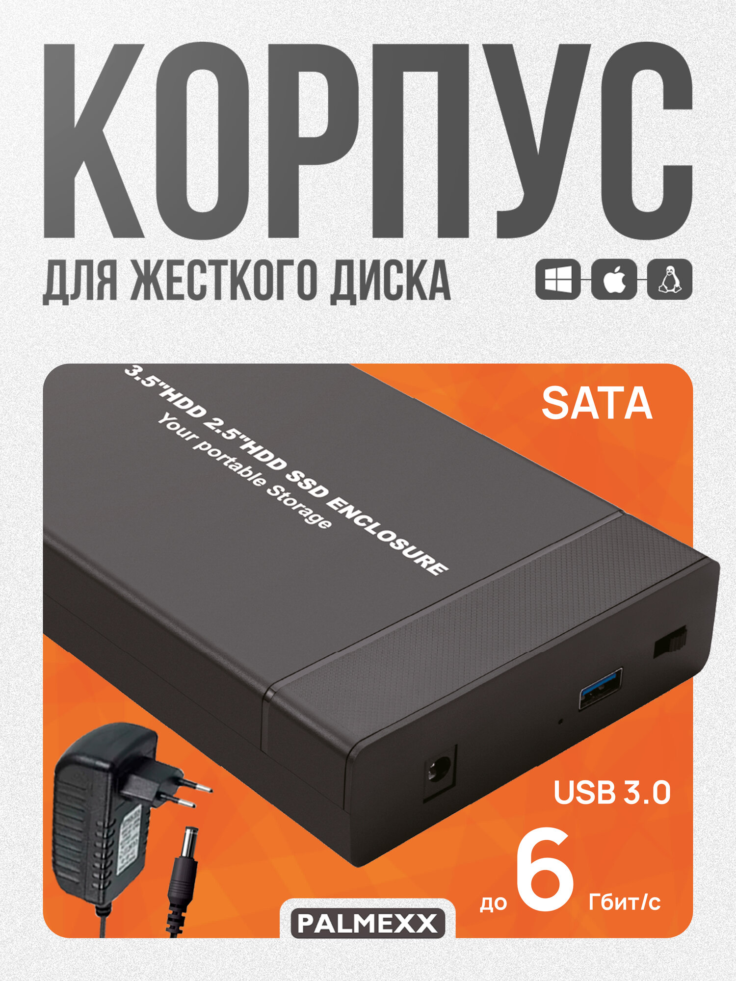 Отзывы на Внешний корпус PALMEXX для жесткого диска SATA 3.5" до 18Тб, USB3.0, чёрный, пластик