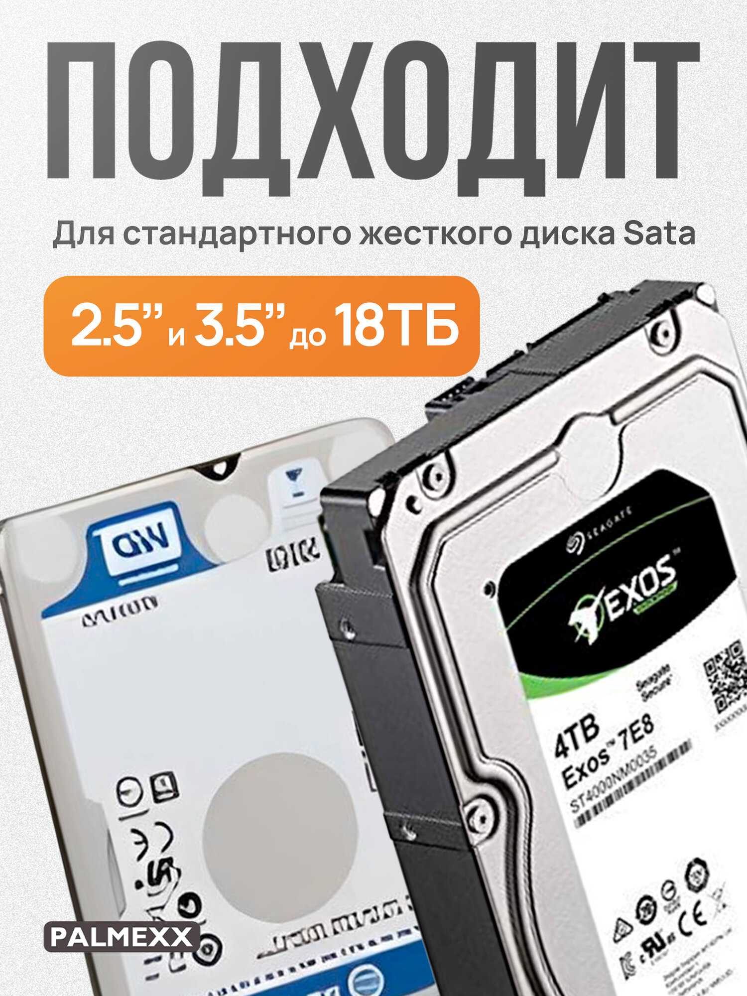 10 цен на Внешний корпус PALMEXX для жесткого диска SATA 3.5" до 18Тб, USB3.0, чёрный, пластик