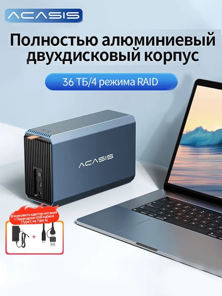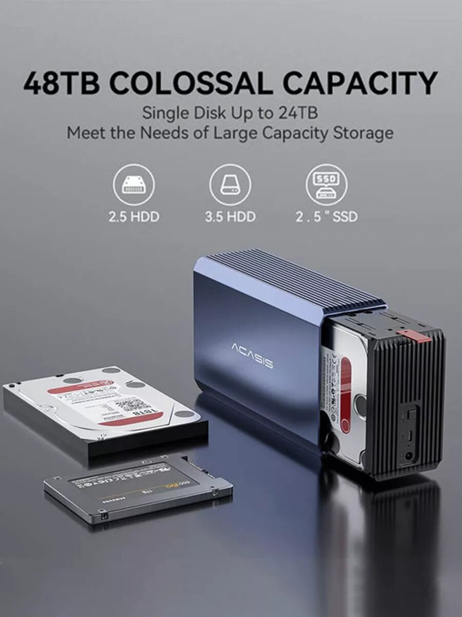 10 цен на Внешний RAID-корпус ACASIS EC-7352, алюминиевый сплав, 48TB, 2 отсеки, серый