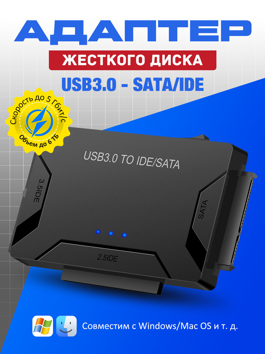 Отзывы на Переходник USB3.0 to SATA/IDE, для HDD 2.5"/3.5", адаптер, для windows/Mac OS