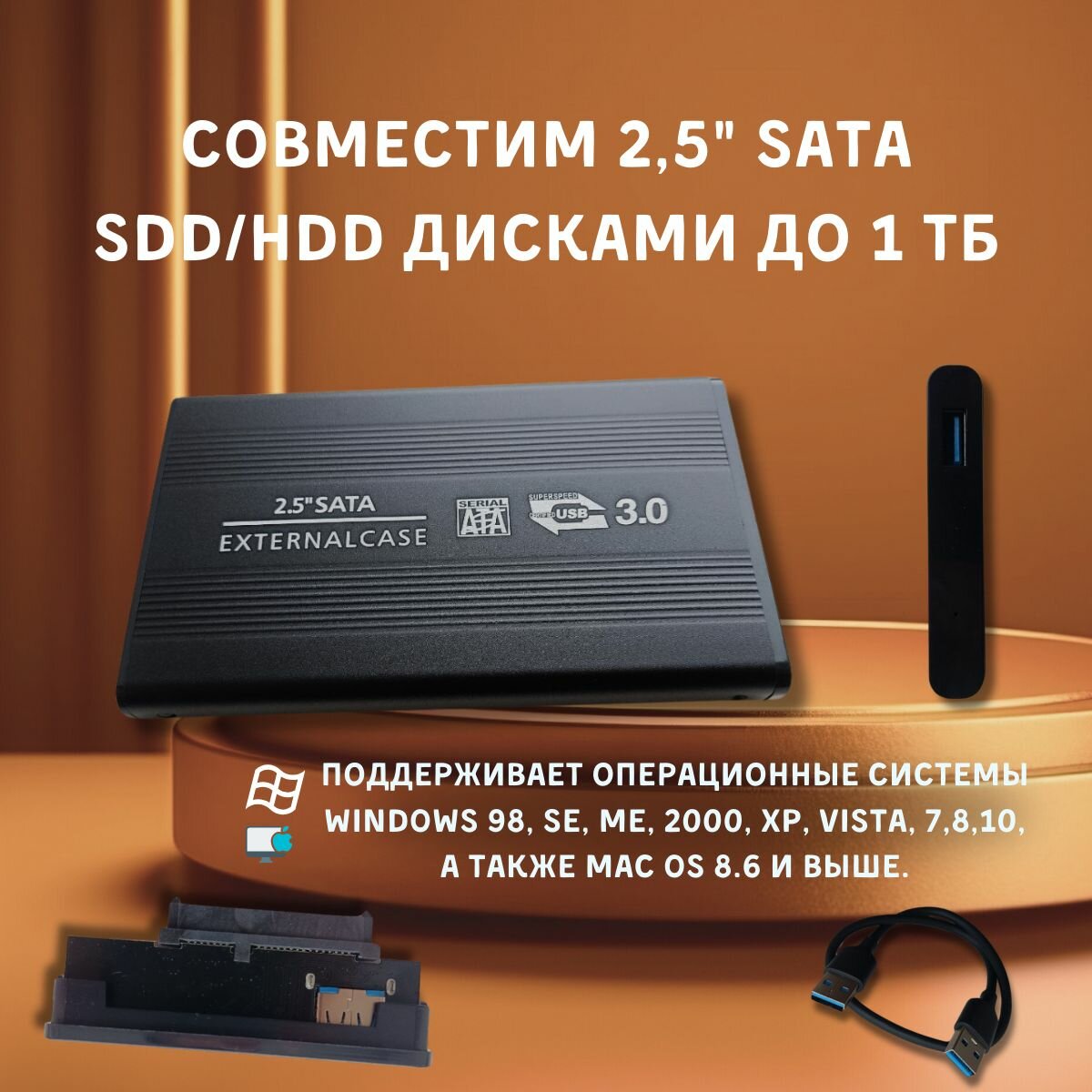 Корпус металлический внешний для жесткого диска SSD 2.5 SATA USB 3.0 HDD SSD SATA BOX информация: