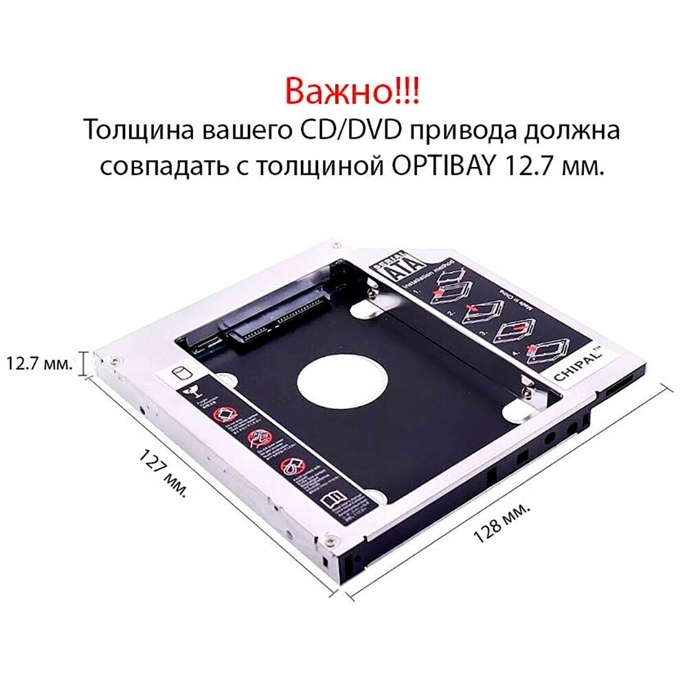 Отзывы на Переходник Optibay 12.7 мм SATA (Second HDD Caddy) / mSATA для жестких дисков или SSD (оптибей)