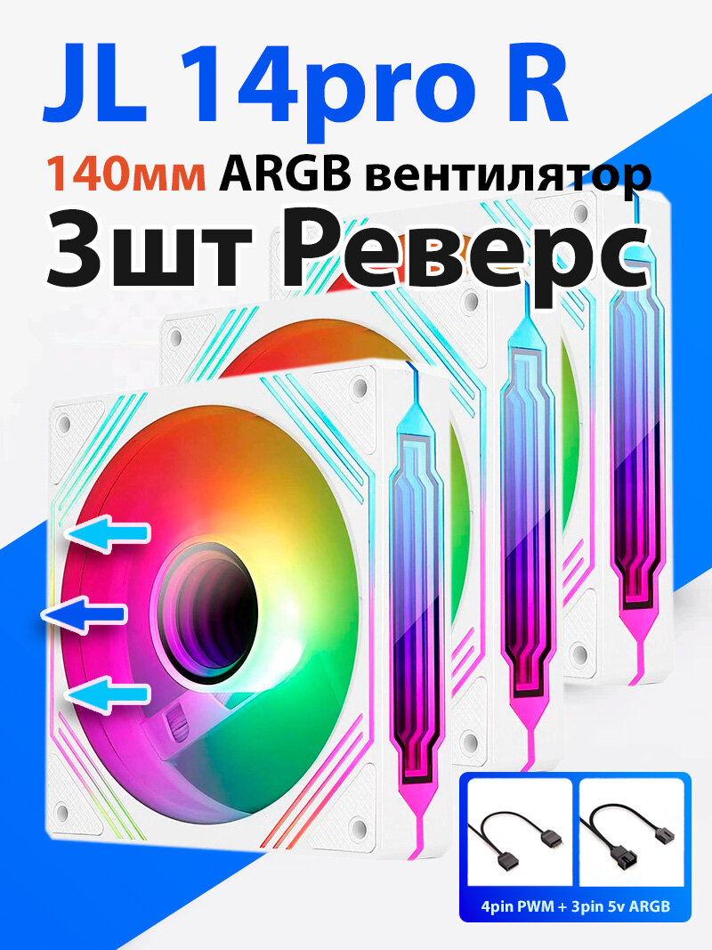 Отзывы на Кулер ARGB Jungle Leopard 14pro 3шт реверсивный вентилятор с подсветкой для корпуса ПК Белый 140мм 5v3pin, 4pin PWM