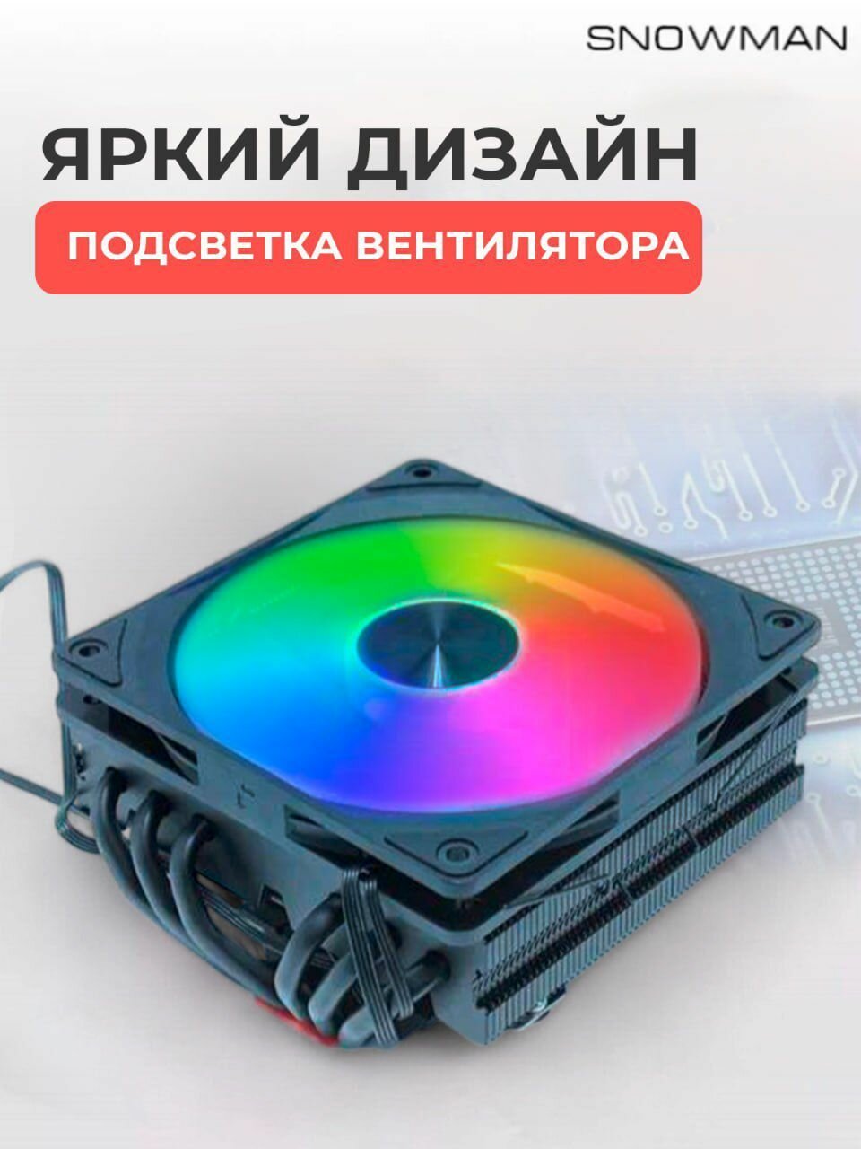 Кулер Snowman MC45-4, башенный, RGB подсветка, для процессора, 1 вентилятор информация:
