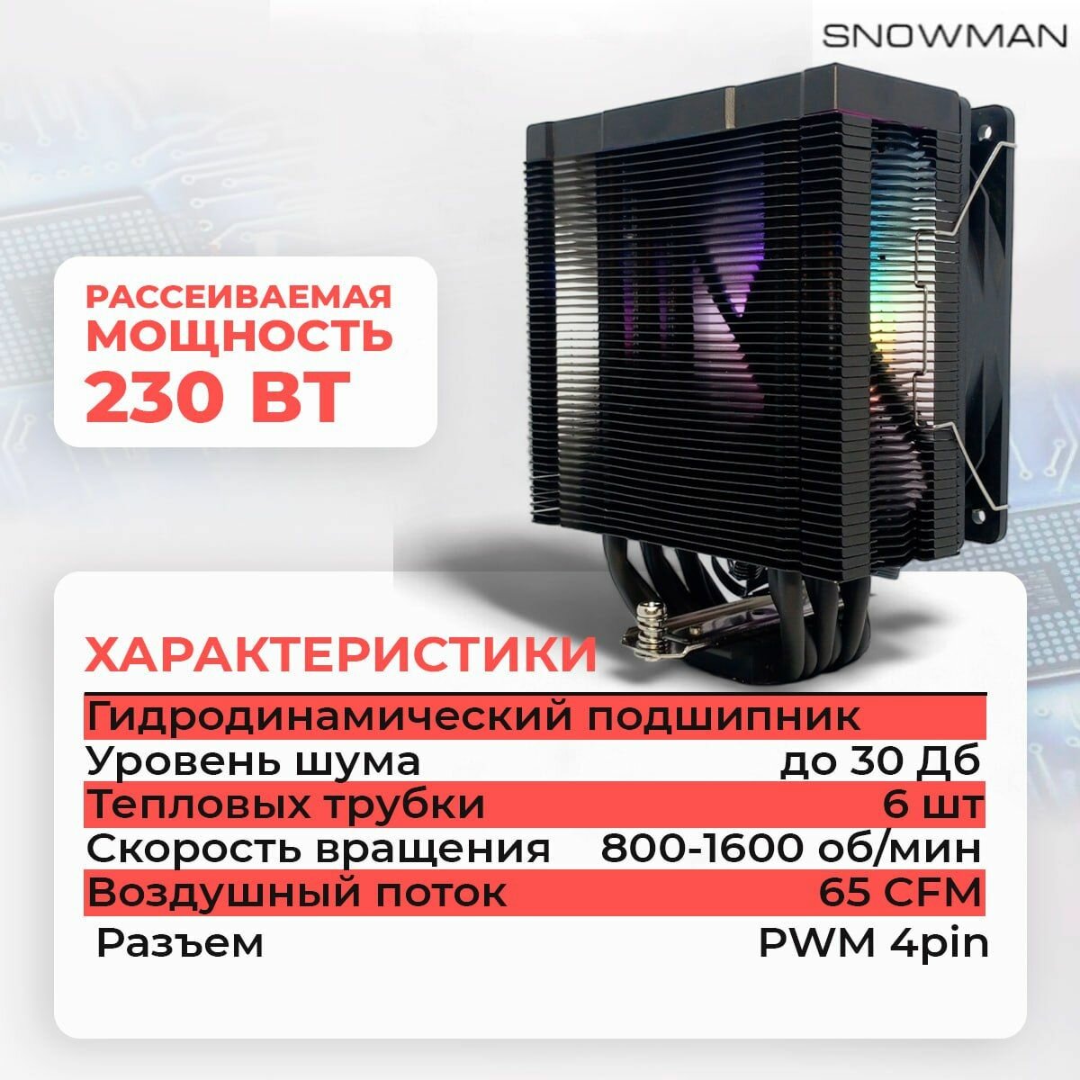 Кулер вентилятор башенный Snowman (Снеговик) MT6-V3 для процессора c RGB подсветкой информация: