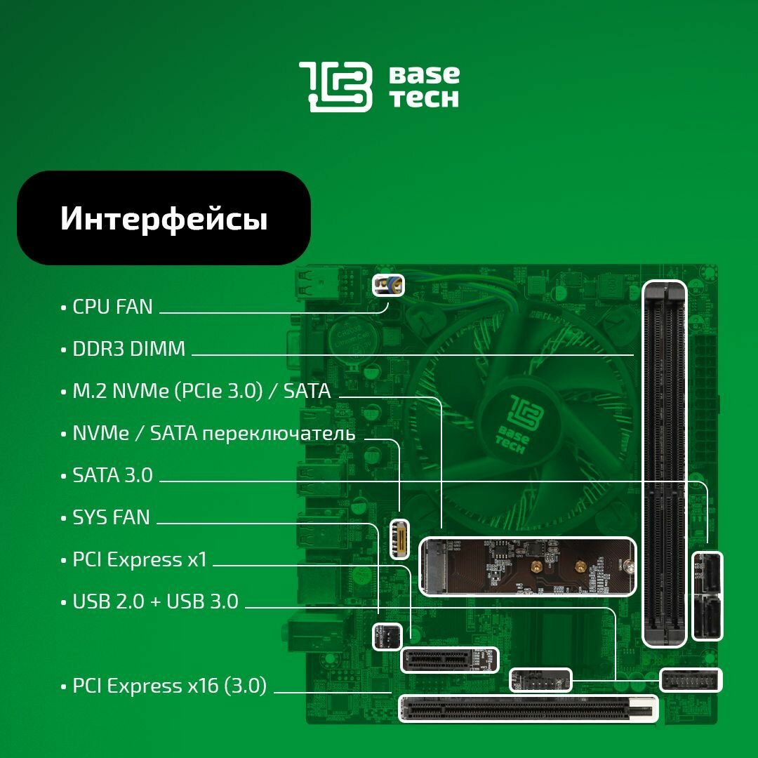 Отзывы на Материнская плата с процессором и кулером BaseTech H61M-K, Socket1155, Intel Core i5-3470, Intel H61, mATX