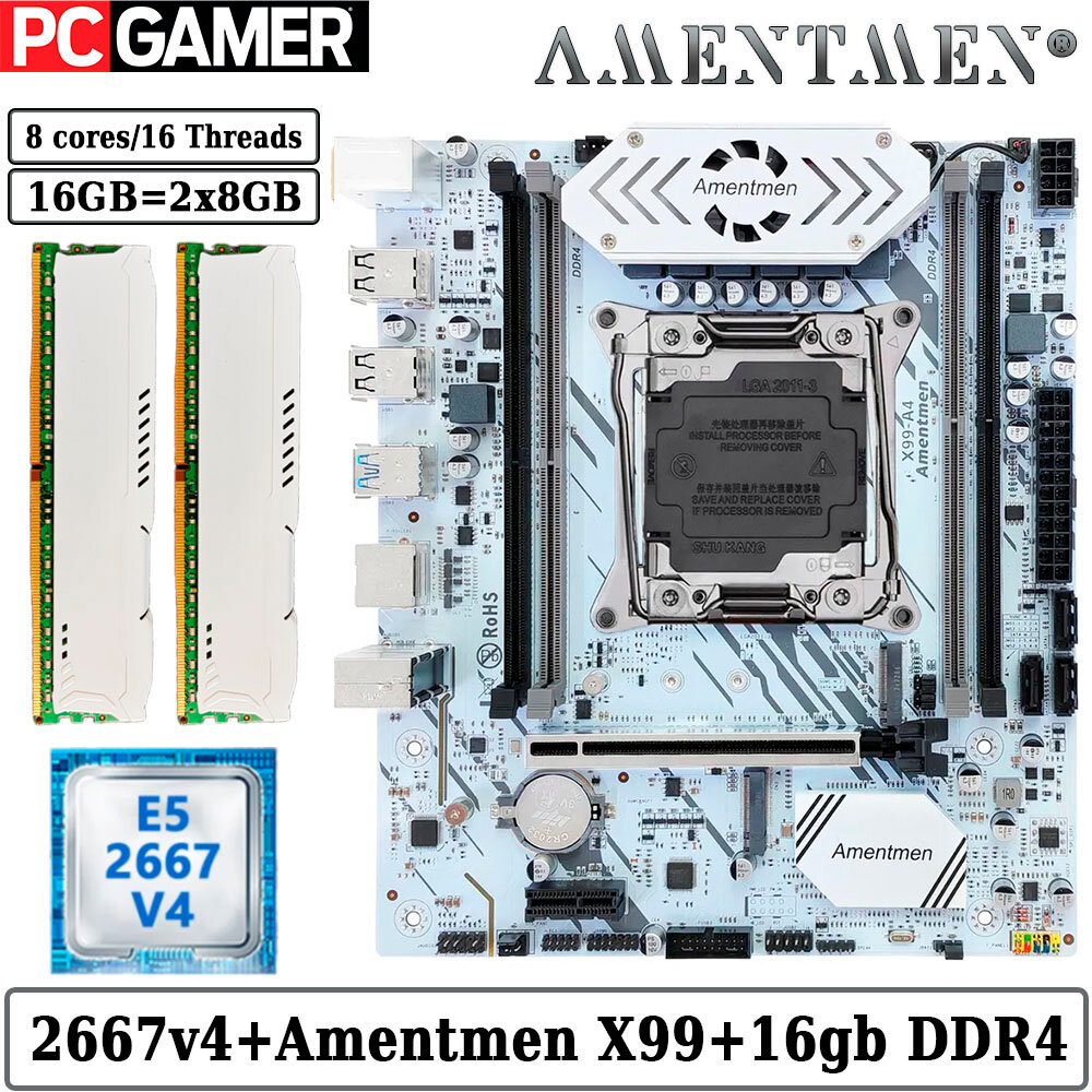 10 цен на Комплект материнская плата Amentmen X99 A4 + Xeon 2667V4 + 16GB DDR4 ECC REG 2x8GB White