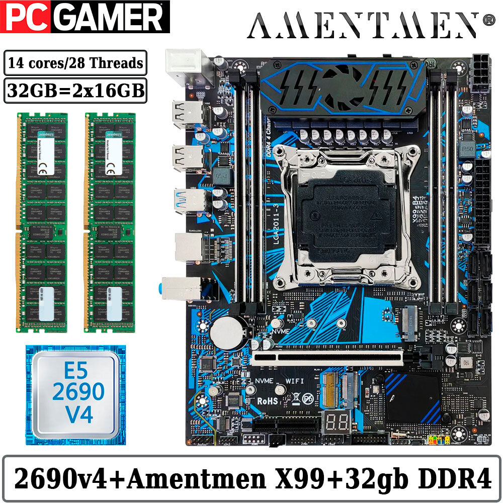 10 цен на Комплект материнская плата Amentmen X99-B4 + Xeon 2690V4 + 32GB DDR4 ECC REG 2x16GB