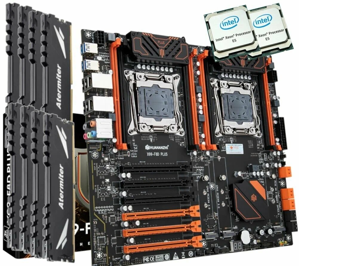 Комплект двухпроцессорная материнская плата Huananzhi X99-F8D PLUS + 2*CPU 2673V4 + 128GB DDR4 ECC