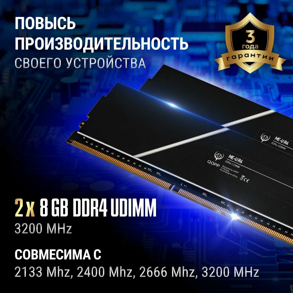 DDR4 U DIMM 16GB Оперативная память для компьютера 3200 Мгц QOPP с радиатором 2 мм 2 500 ₽