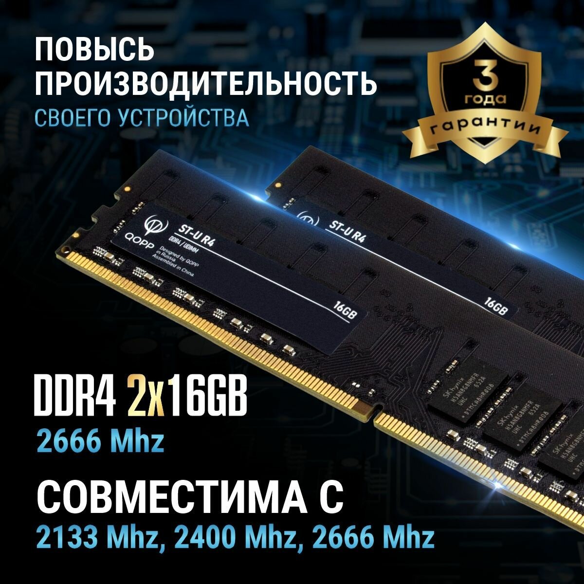 DDR4 DIMM 2х16GB Оперативная память для компьютера 2666 Мгц QOPP информация: