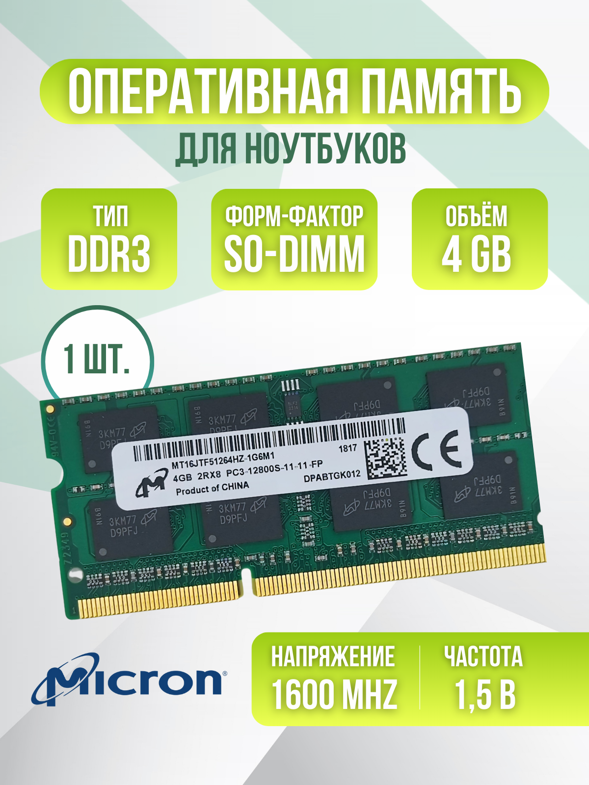 Оперативная память для ноутбука DDR3 4GB Micron 1600MHz SODIMM информация:
