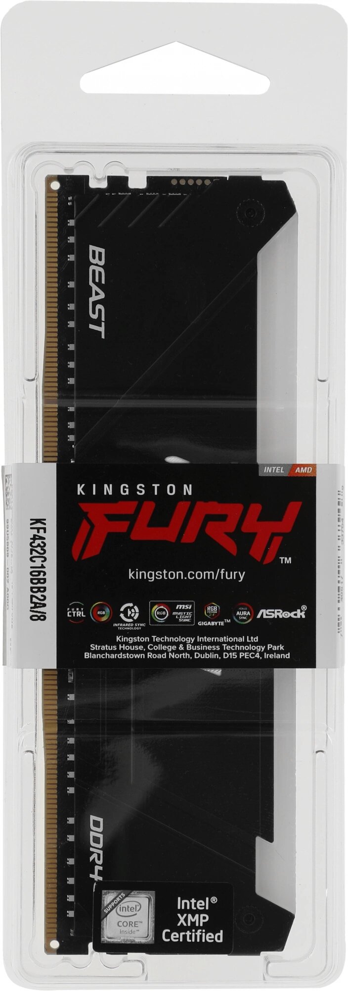 Kingston Память DDR4 8GB 3200MHz Kingston KF432C16BB2A/8 Fury Beast RGB RTL Gaming PC4-25600 CL16 DIMM 288-pin 1.35В dual rank с радиатором Ret информация:
