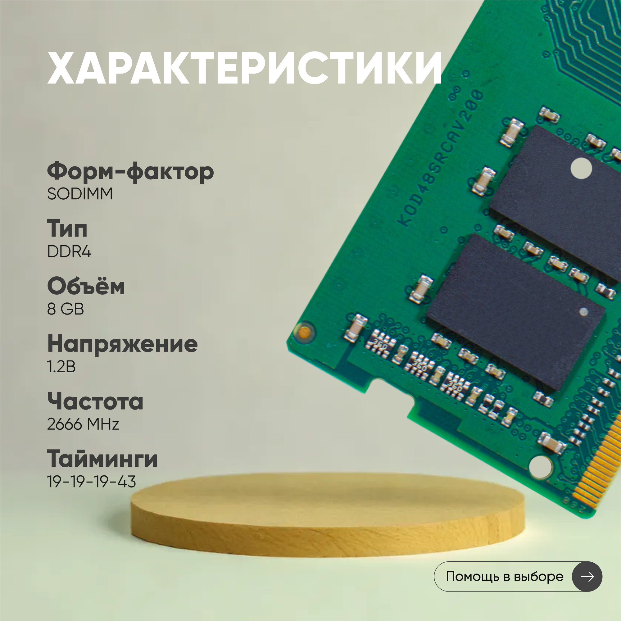 Модуль памяти Kingston SODIMM DDR4, 8ГБ, 2666МГц, 260-pin, PC4-21300, CL19 19-19-19-43 информация: