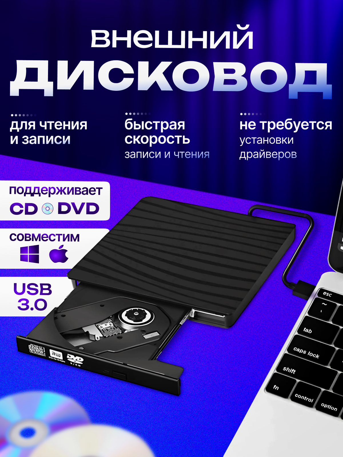 Отзывы на Внешний оптический привод, для CD/DVD/VCD, USB 3.0, с картридером