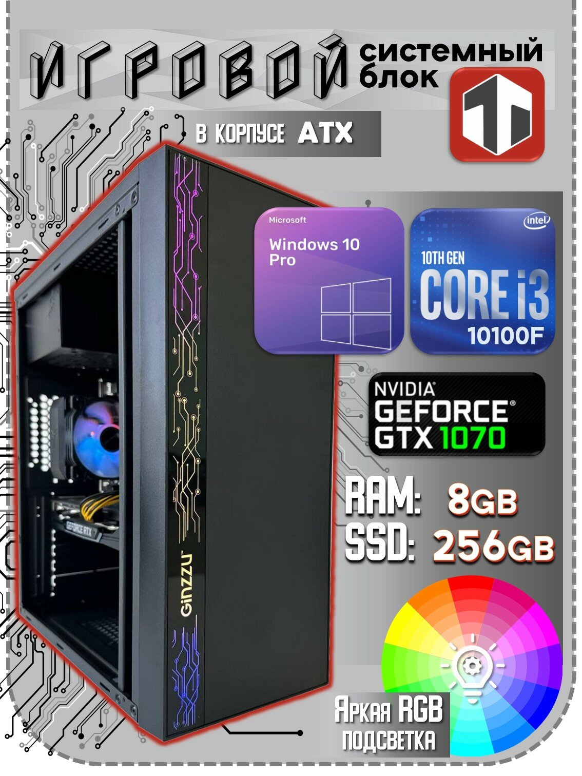 Игровой ПК TRADE Electronics Intel Core i3-10100F (3.60 ГГц), RAM 8 ГБ, SSD 256 ГБ, NVIDIA GeForce GTX 1070 (8 Гб) информация: