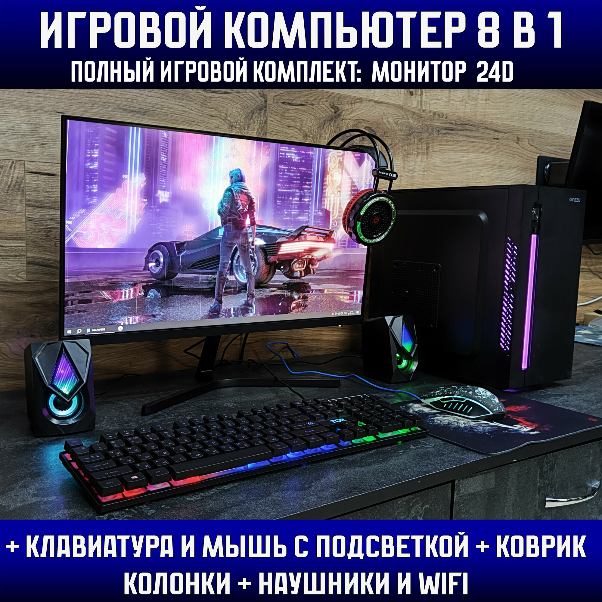 Игровой набор 8в1\Системный блок\Intel i7 \Ram 8Gb\RX 580 \SSD 512Gb\500w\Игровой компьютер+ клавиатура+ мышь+ гарнитура+ монитор 24d+колонки 62 462 ₽