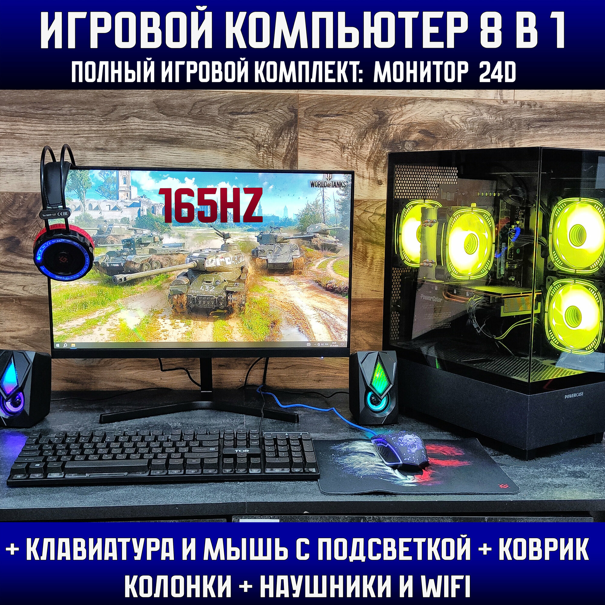 10 цен на Игровой набор 8в1\Системный блок\Intel i7 \Ram 8Gb\RX 580 \SSD 240b\500w\Игровой компьютер+ клавиатура+ мышь+ гарнитура+ колонки+ монитор 24d