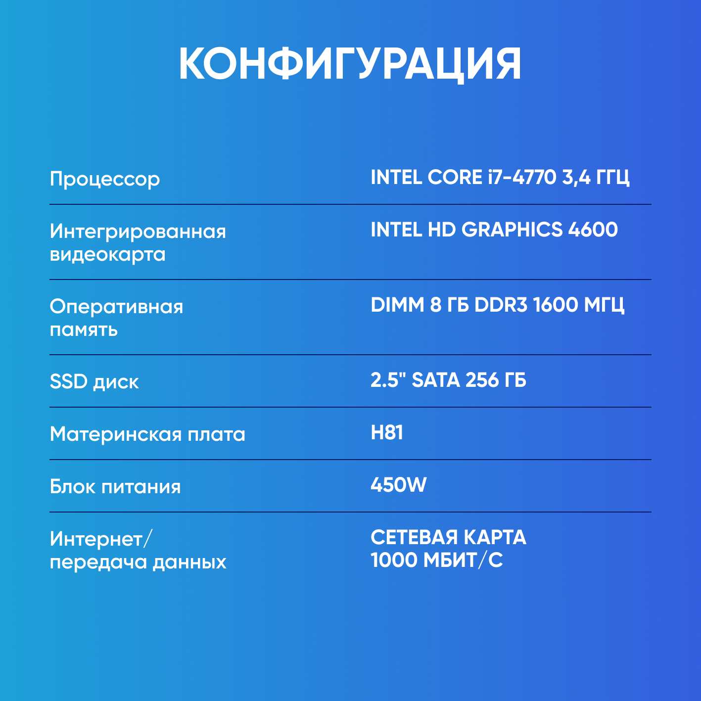 Системный блок Компьютер офисный ПК (Intel Core i7-4770 (3.4 ГГц), RAM 8 ГБ, SSD 256 ГБ, Windows 10), чёрный матовый информация: