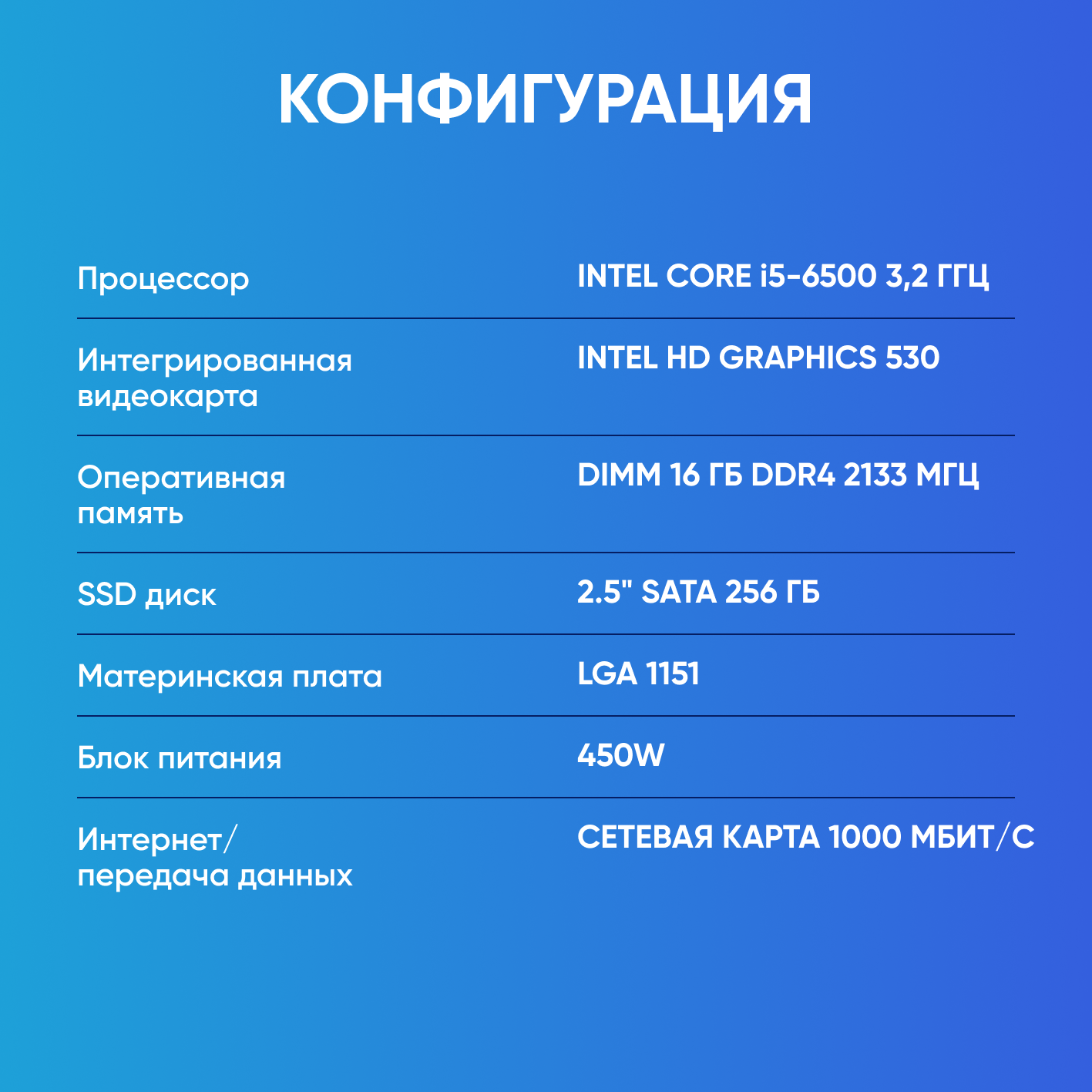 Системный блок Компьютер офисный ПК (Intel Core i5-6500 (3.2 ГГц), RAM 16 ГБ, SSD 256 ГБ, Windows 10), черный матовый информация: