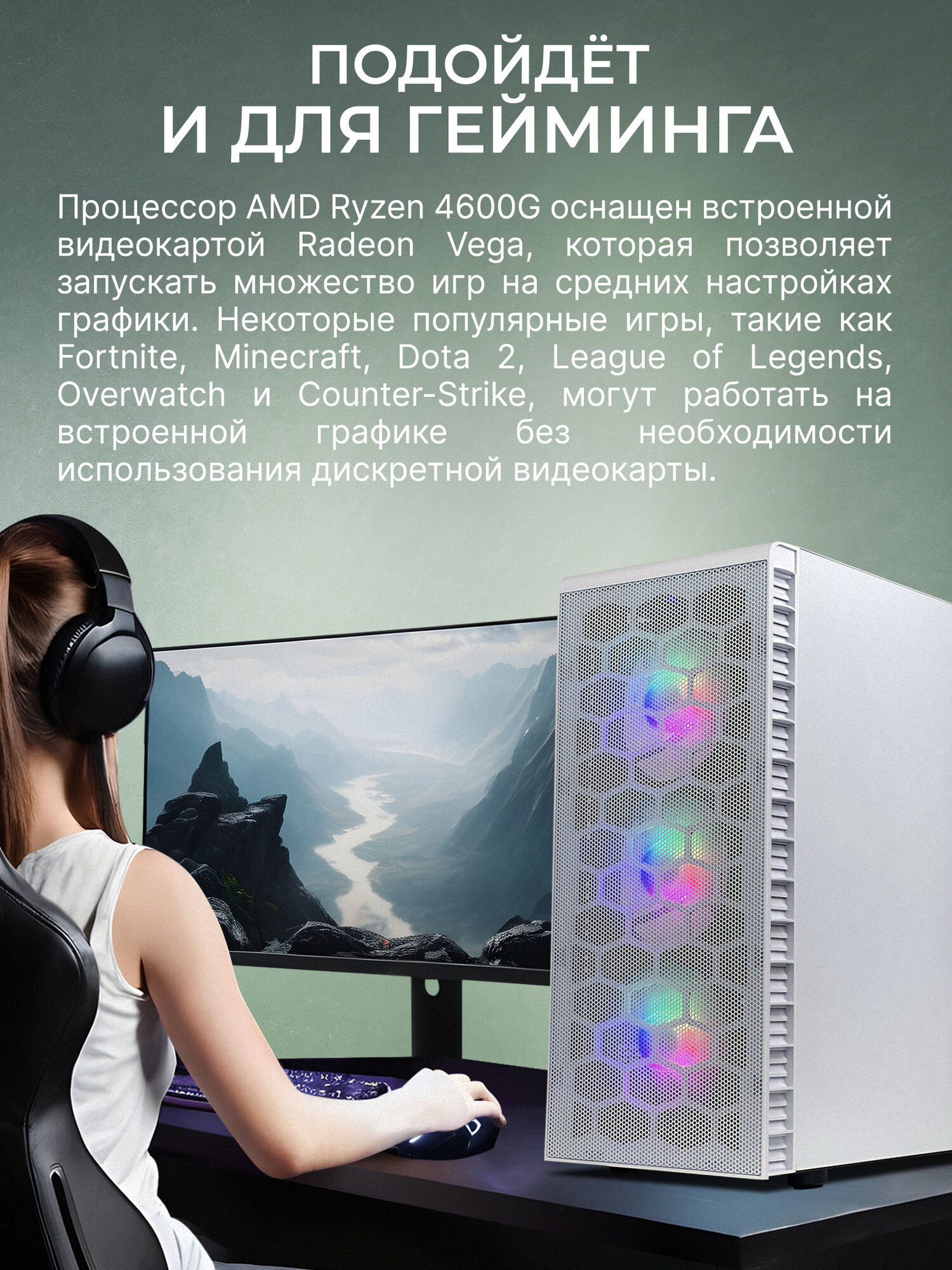Игровой компьютер юкомс Ryzen 3 1200, RX 6400 4GB, SSD 512GB, 32GB DDR4, БП TT450 450W, win 10 pro, White Cube case