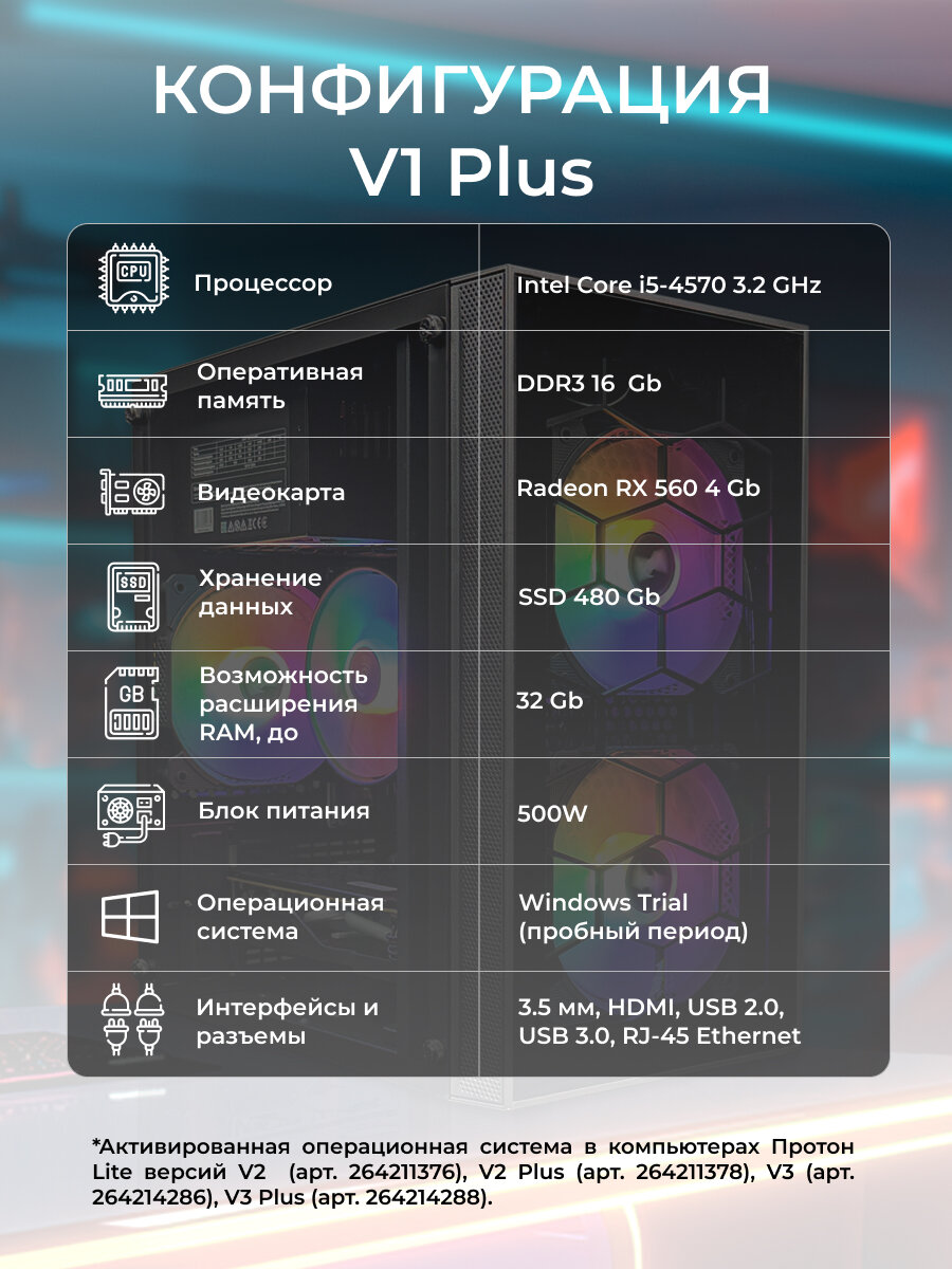 Игровой системный блок Robotcomp Протон Lite Plus Intel i5 + RX 560 4GB информация: