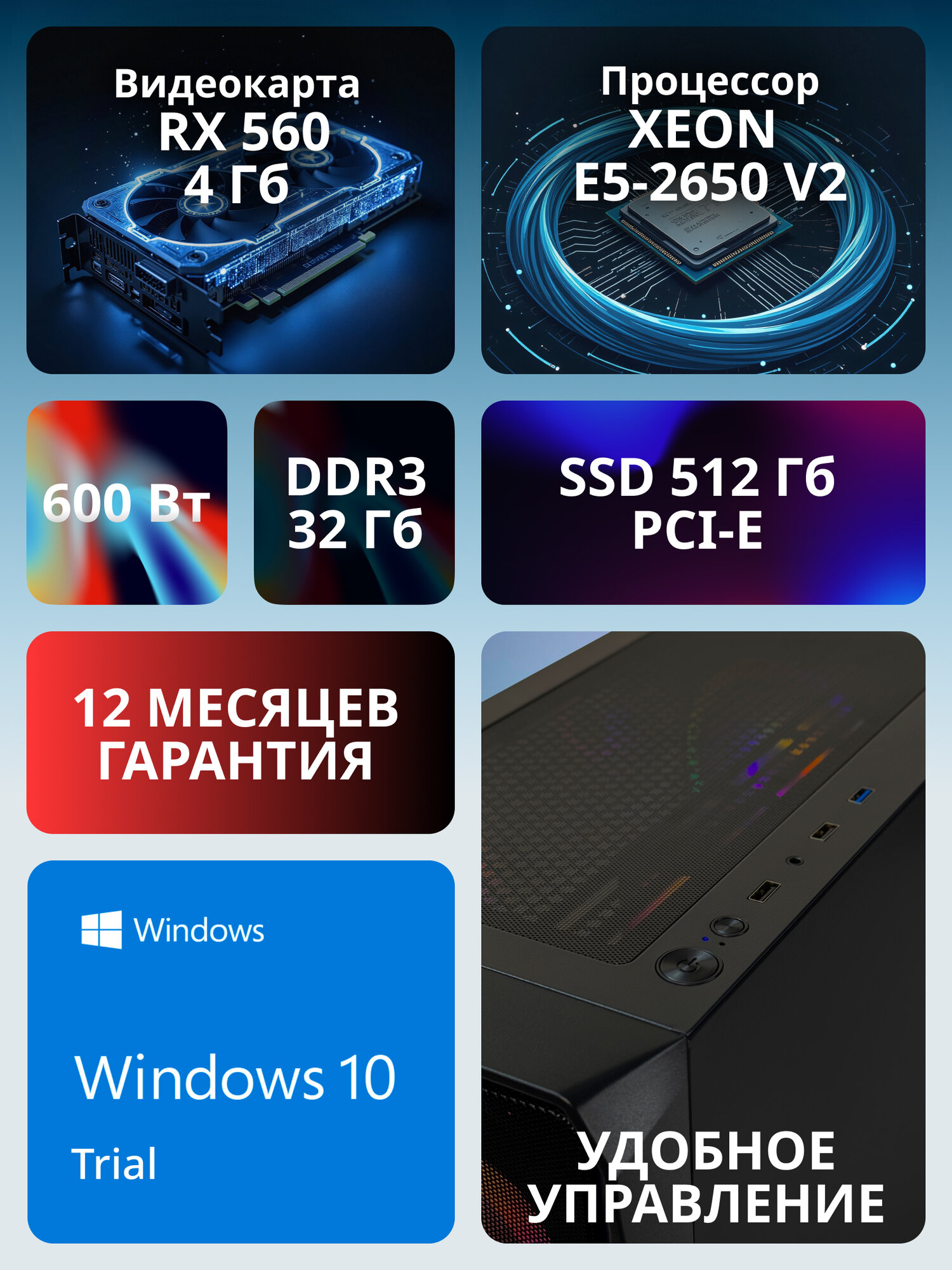 Системный блок Intel Core i5-12400F, RAM 32ГБ, SSD NVMe 512ГБ, NVIDIA GeForce RTX 3060 (12 Гб)