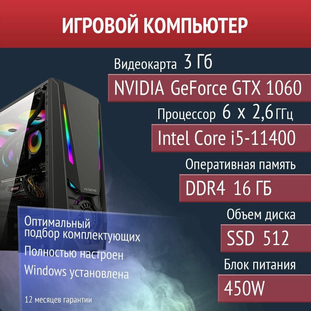 Игровой компьютер SCUM, DayZ, Eternal Return NVIDIA GeForce GTX 1060 (3 Гб) Intel Core i5-11400 информация: