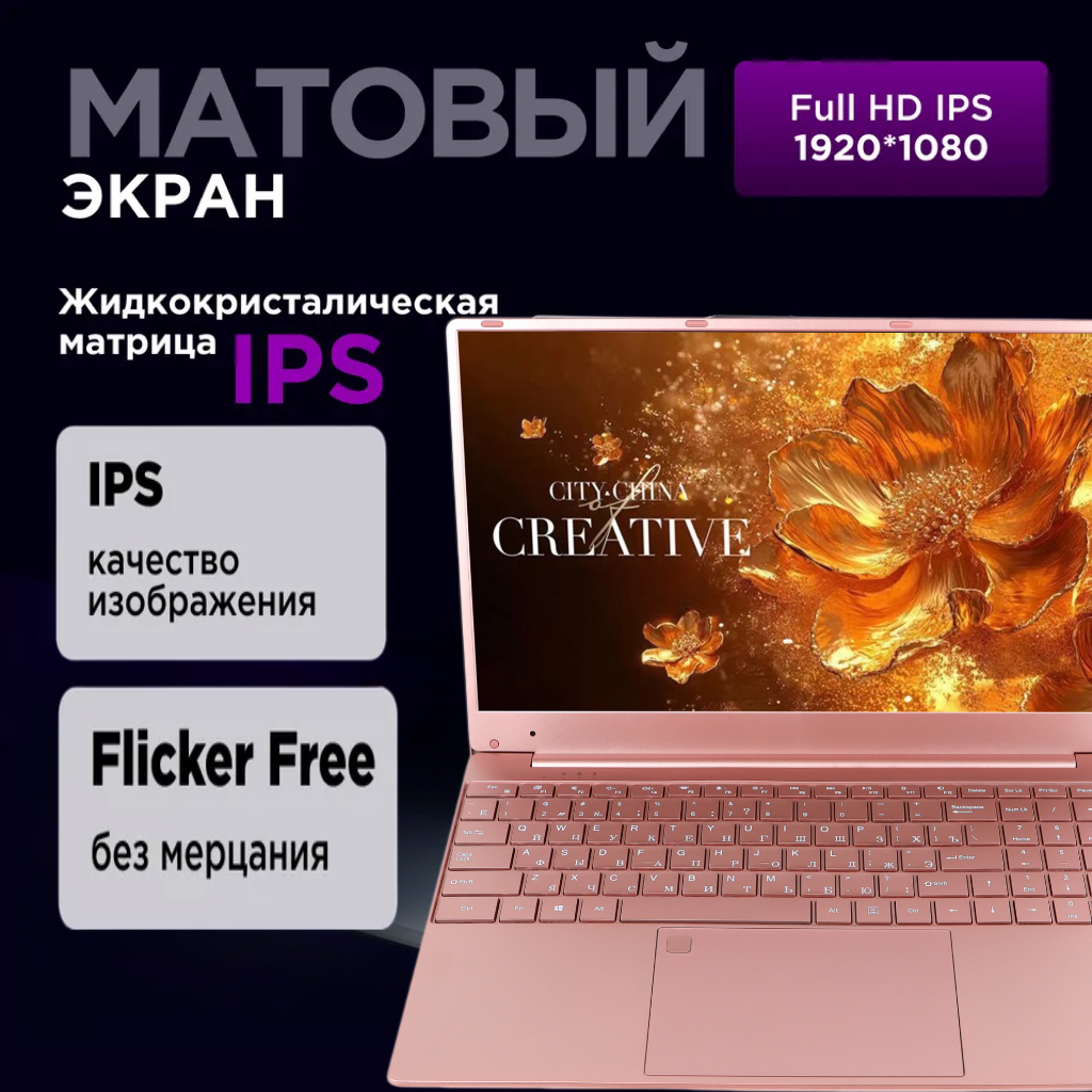 Ноутбук 15.6", Intel N95 (3.4 ГГц), RAM 16 ГБ, SSD 512 ГБ, Intel UHD Graphics, Windows 11 Pro, Розовый подарок, Русская раскладка 32 290 ₽