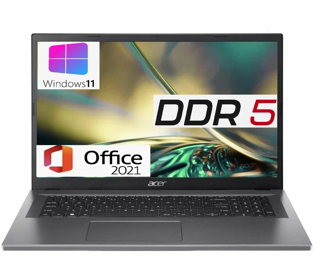 10 цен на Acer Aspire 3 Ноутбук 17.3", Intel N305-8 ядер до 4.4 ггц, RAM 16 ГБ, SSD 512 ГБ, Win 11 Pro+ Office, Русская раскладка