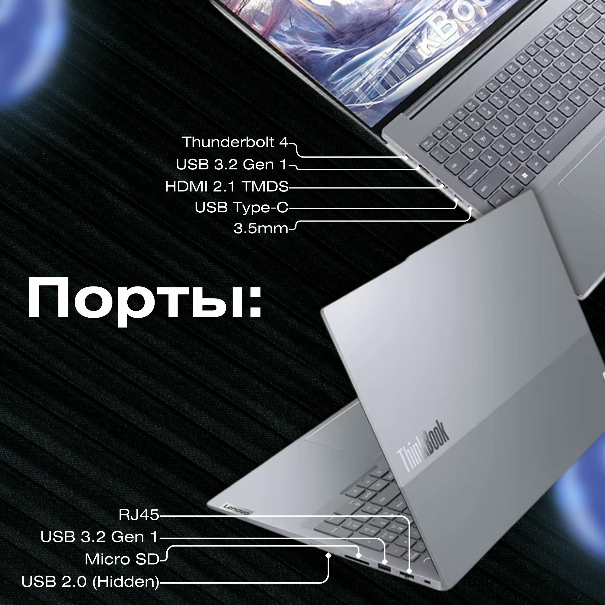 Ноутбук Lenovo Thinkbook 16+, Intel Core Ultra 5 225H, Intel Arc Graphics 130T, 48 GB, 3 TB, серый 150 064 ₽