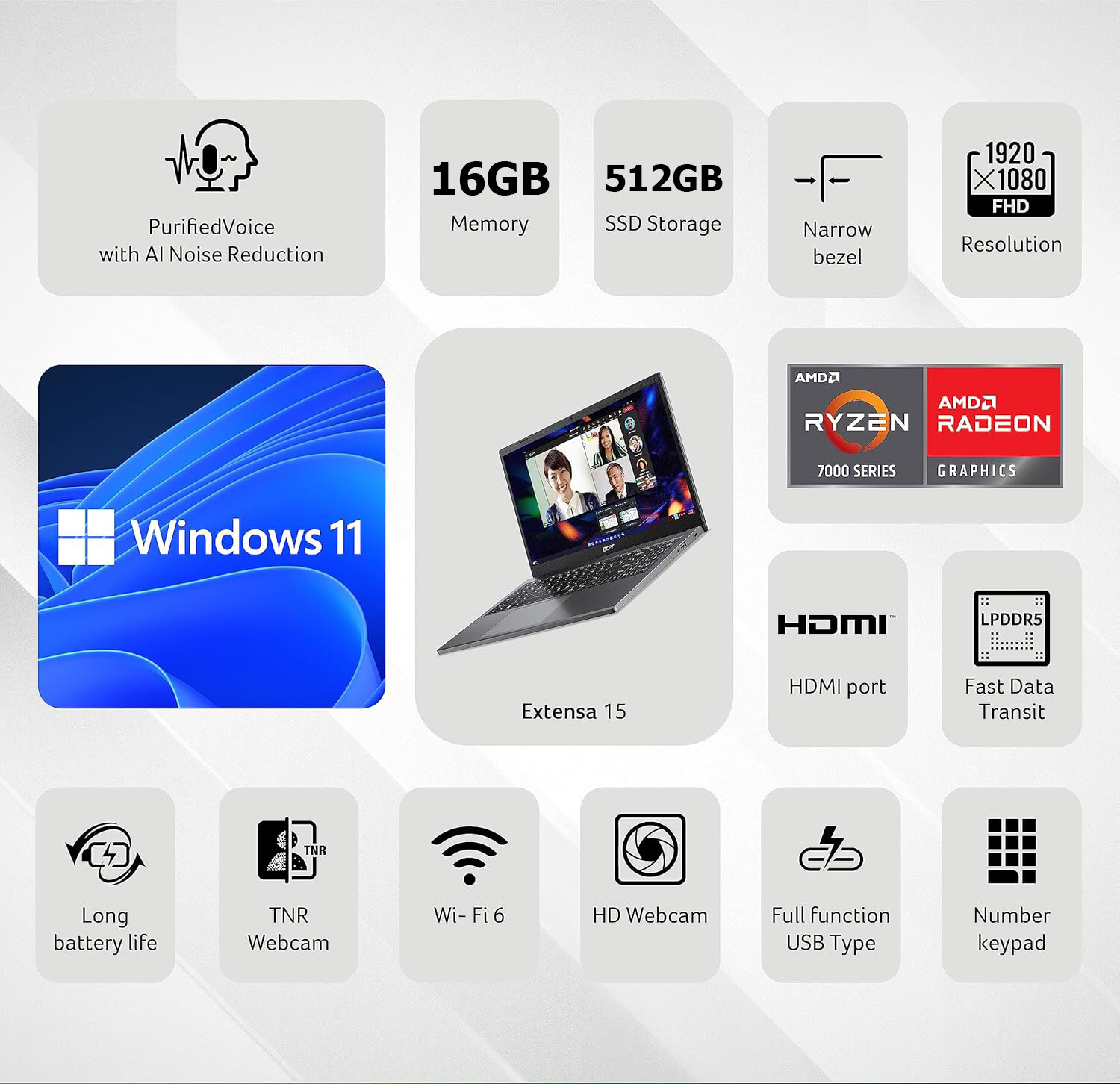 Ноутбук Acer Extensa 15 2024 Ryzen 7320U/16GB DDR5/512GB SSD/Radeon 610M/Windows 11 информация: