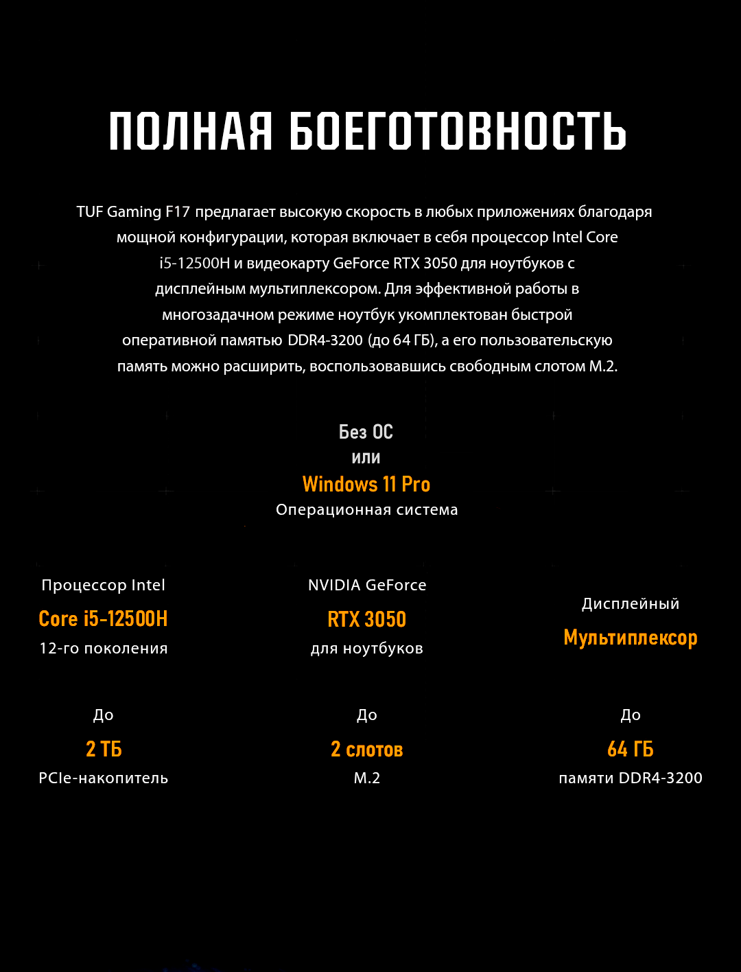 Игровой ноутбук Asus TUF Gaming F17 17.3 IPS 144Гц FHD Core i5-12500H 16ГБ 512ГБ GeForce RTX3050 Серый Без ОС информация: