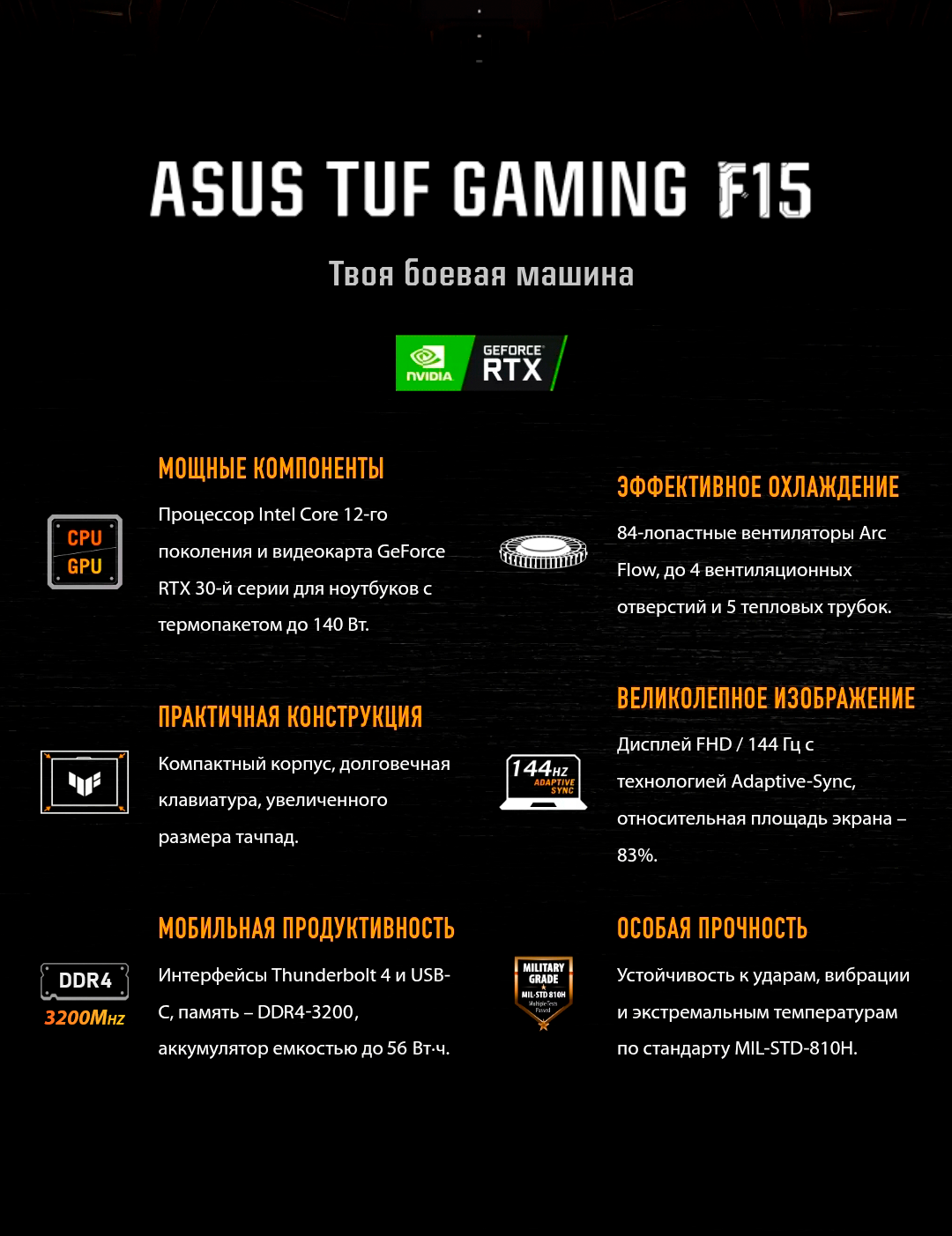 Отзывы на Игровой ноутбук Asus TUF Gaming F15 15.6 IPS 144Гц FHD Core i5-12500H 16ГБ 512ГБ GeForce RTX 3050 Серый Windows11+Office