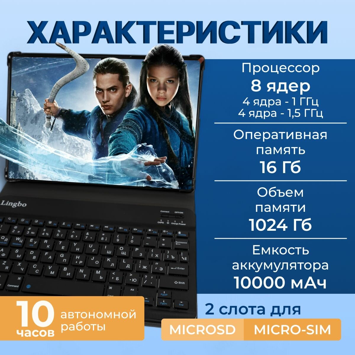 Планшет Андройд L16 MAX 10.1", 16 ГБ + 1024 ГБ, с клавиатурой информация: