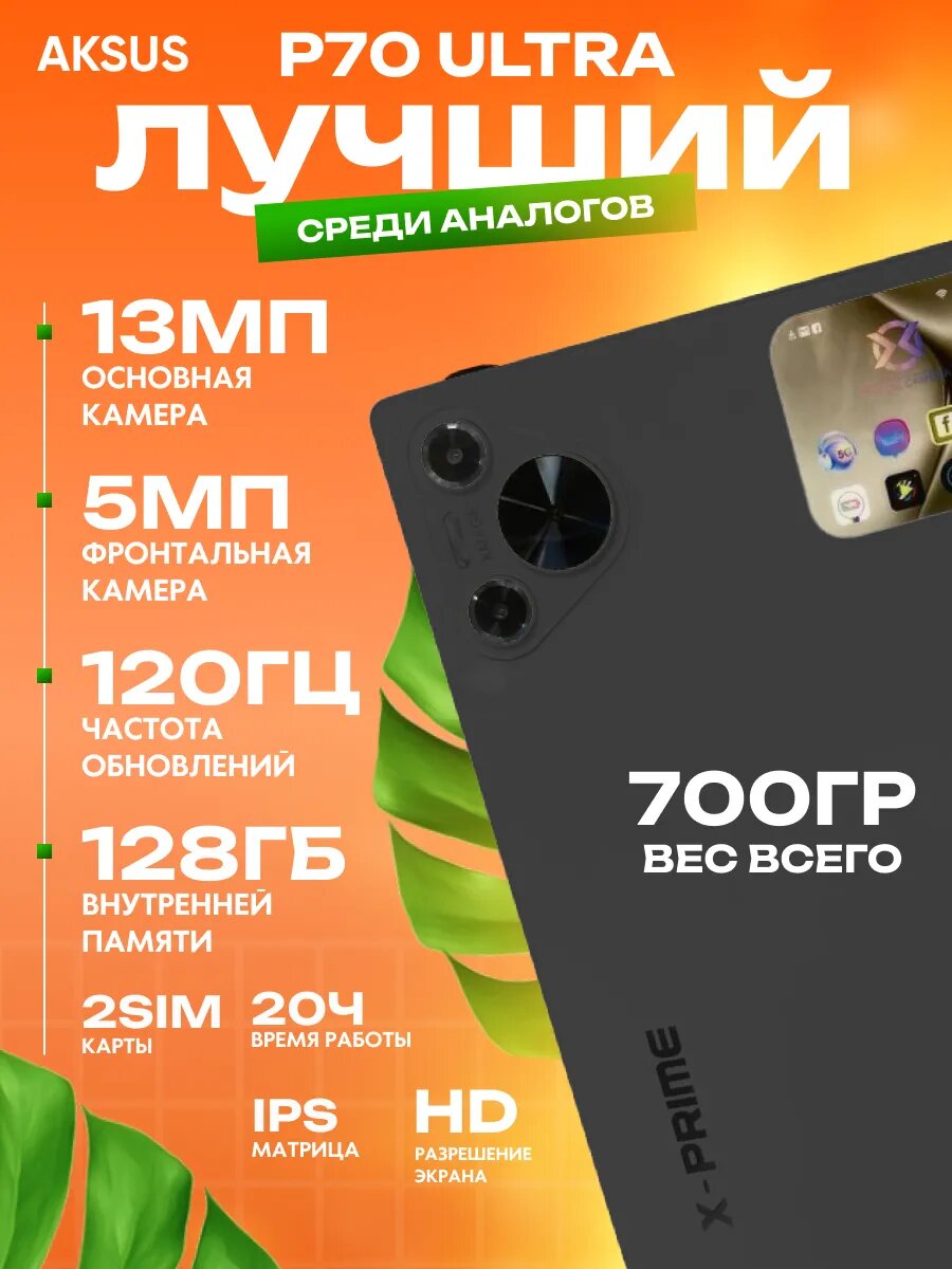10 цен на Планшет AKSUS P70ULTRA, Android 13, экран 10,1", 13 Мп, 4 Гб, 128 Гб