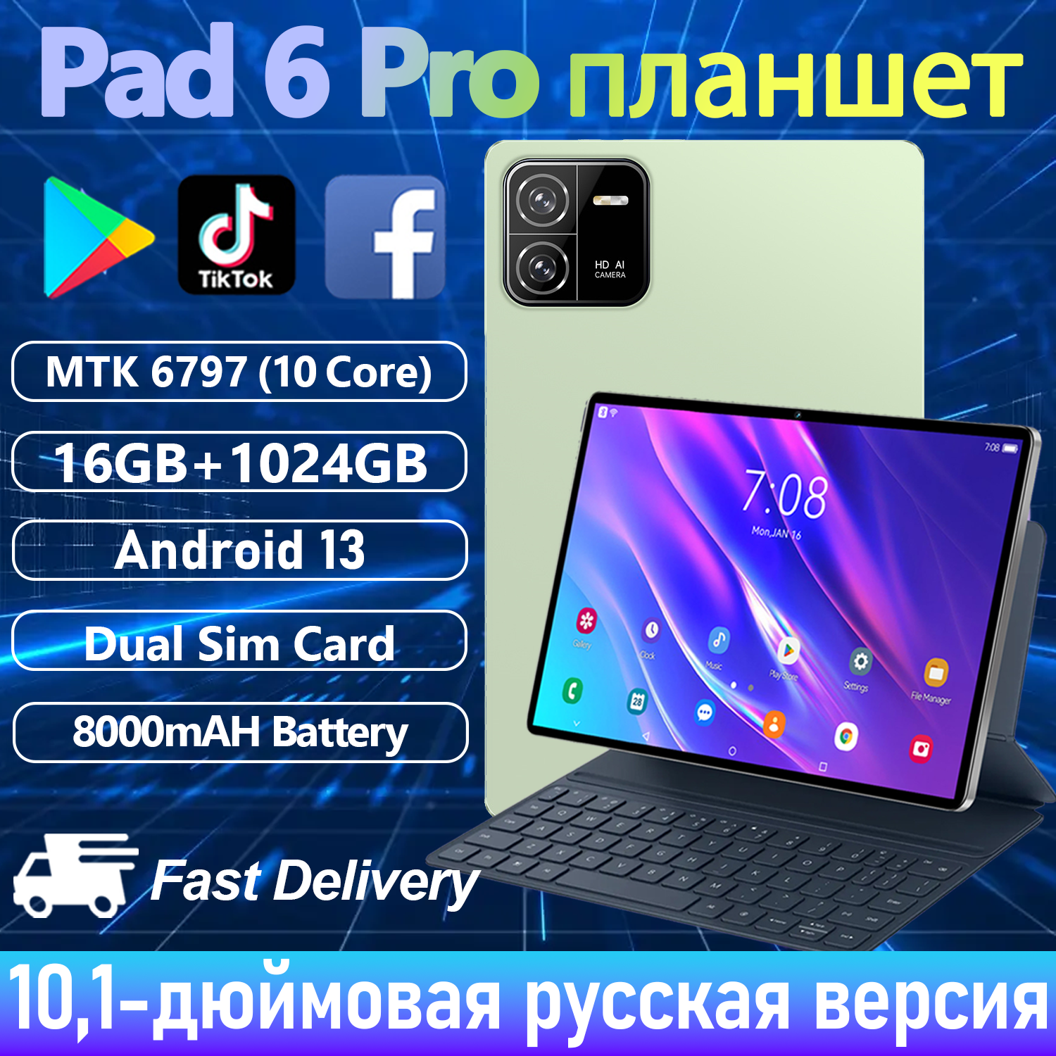 10 цен на Планшет "Pad 6 Pro", Android 13, HD экран, 10,1 дюйма, 16 ГБ+1 ТБ, Зеленый