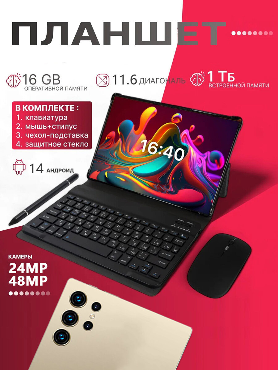 Планшет андроид с клавиатурой S24ULTRA,16+1024GB,10000mAh, Wi-Fi+сотовая связь, Android 14, клавиатура и стилус,11,6' информация: