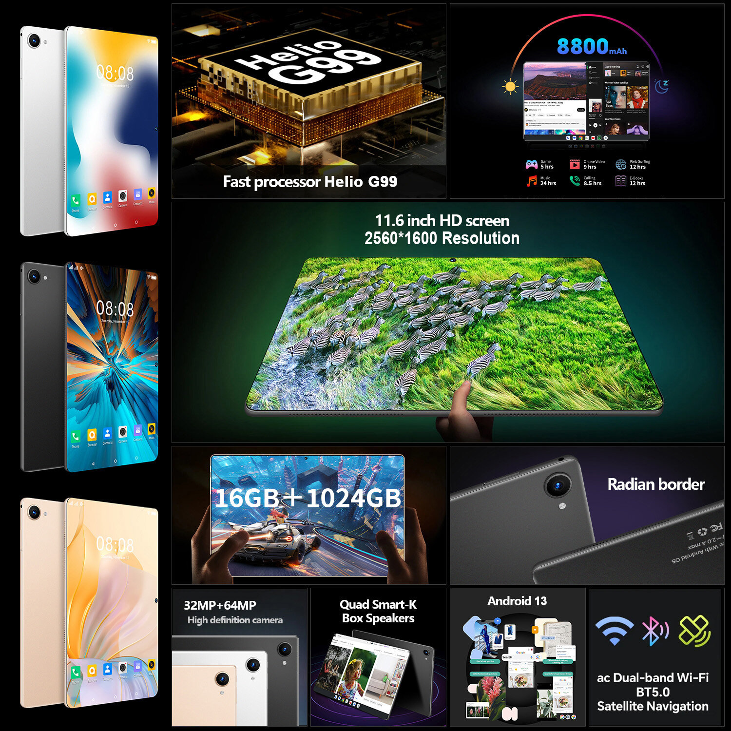 Планшет с клавиатурой PAD A9,12GB+1024ГБ, Андроид 13, Игровой планшет, планшет с сим картой информация: