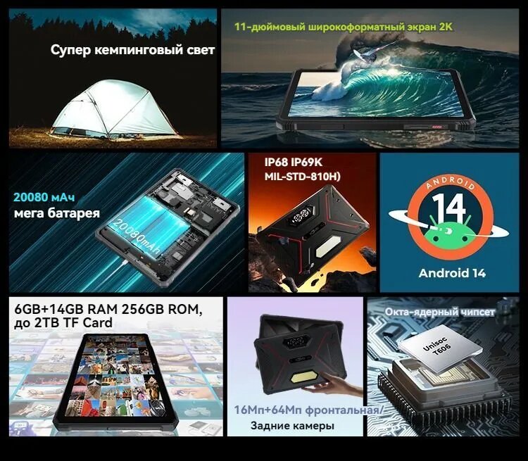 Планшет HOTWAV R9 Pro Rugged Tablet, 11" FHD + 20080mAh / Планшет Android 14, 6GB+256GB, 16MP+64MP информация: