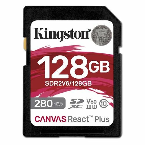 Карта памяти SDXC UHS-II Kingston Canvas React Plus 128 ГБ, 280 МБ/с, Class 10, SDR2V6/128GB, 1 шт, без адаптера информация: