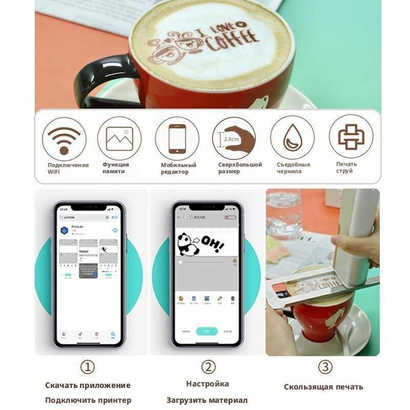 Отзывы на Ручной пищевой принтер, струйная печать для гурманов, машина + кофе + красный + черный картриджи